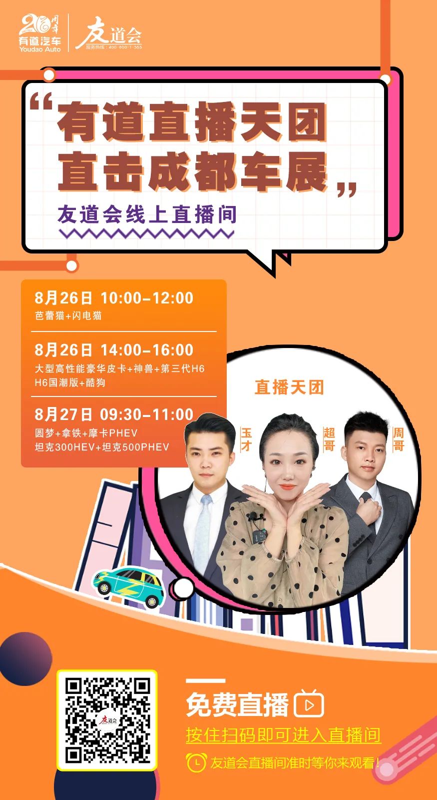 8月26日~8月27日,有道直播天團(tuán)直擊成都車展,敬請期待!