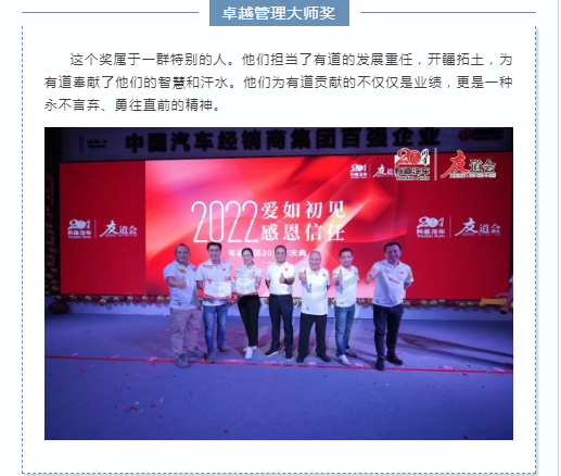 一、“感恩”:感謝所有陪伴有道汽車(chē)一路走來(lái)的伙伴與客戶朋友,感謝所有支持和關(guān)懷有道汽車(chē)成長(zhǎng)的廠家領(lǐng)導(dǎo)、合作相關(guān)方、社會(huì)各界朋友們和有道家人們。