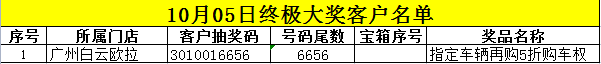 10月5日第九周的直播,是20周年慶直播抽獎(jiǎng)活動(dòng)的最后一次抽獎(jiǎng)直播,終極大獎(jiǎng)終于在萬眾矚目中揭曉,恭喜來自廣州白云歐拉門店的車友抽中了終極大獎(jiǎng)——指定車輛再購(gòu)5折購(gòu)車權(quán)!