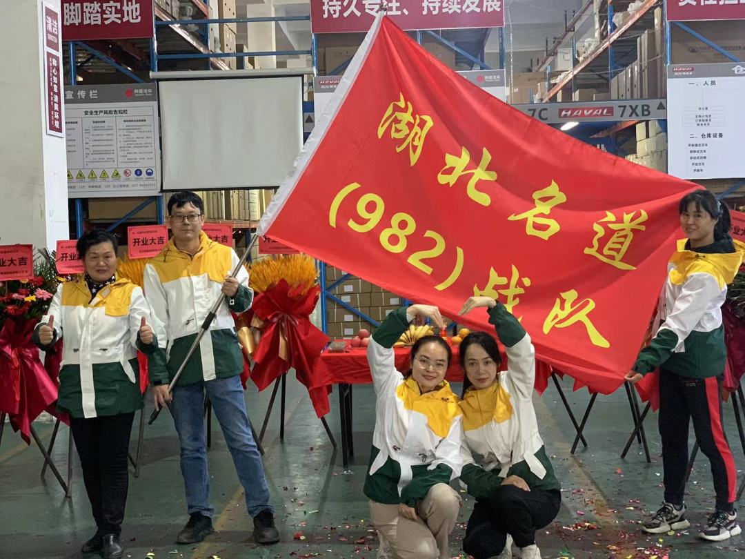 當(dāng)天吉時(shí):戰(zhàn)旗飄起,彩花綻放,風(fēng)光正好,太陽(yáng)正紅,給武漢倉(cāng)剪彩儀式帶來(lái)了吉祥好兆頭!在曾總的主持下,剪彩儀式順利啟動(dòng),曾總與嘉賓、湖北名道團(tuán)隊(duì)一起在現(xiàn)場(chǎng)剪彩,祝福武漢倉(cāng)開(kāi)業(yè)大吉、生意興隆。