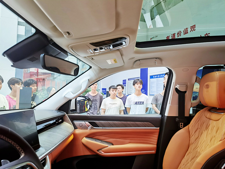 有道汽車集團(tuán)相關(guān)負(fù)責(zé)人分批帶領(lǐng)學(xué)生們進(jìn)行銷售展廳環(huán)境及售后區(qū)域的參觀了解。