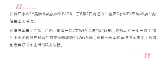 現(xiàn)在,即WEY來丨有道汽車集團(tuán)P8上市,燃爆三??!