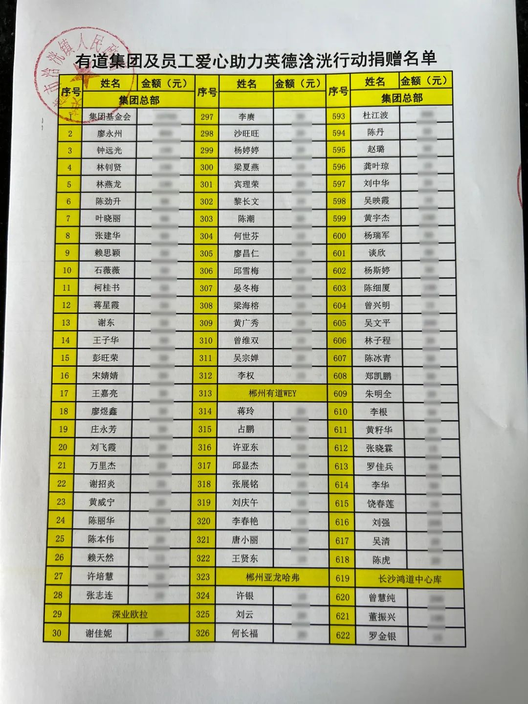 有道集團(tuán)員工愛(ài)心捐贈(zèng)名單