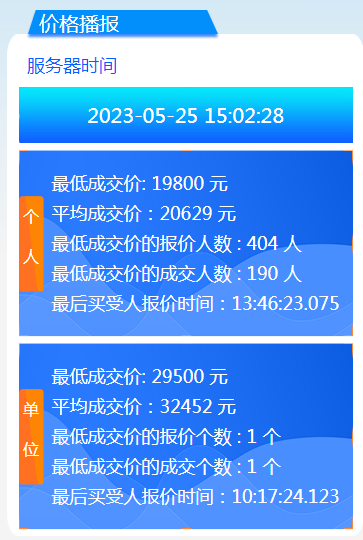個(gè)人最低成交價(jià)為10000元,最低成交價(jià)成交人數(shù)為15人,個(gè)人平均價(jià)格為36289元/人;