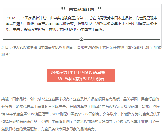重磅!哈弗與WEY攜手入圍央視國家品牌計劃