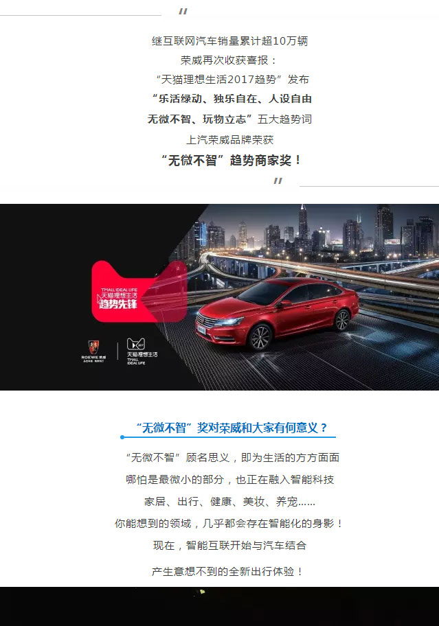 喜報!榮威榮獲“無微不智”趨勢商家大獎!