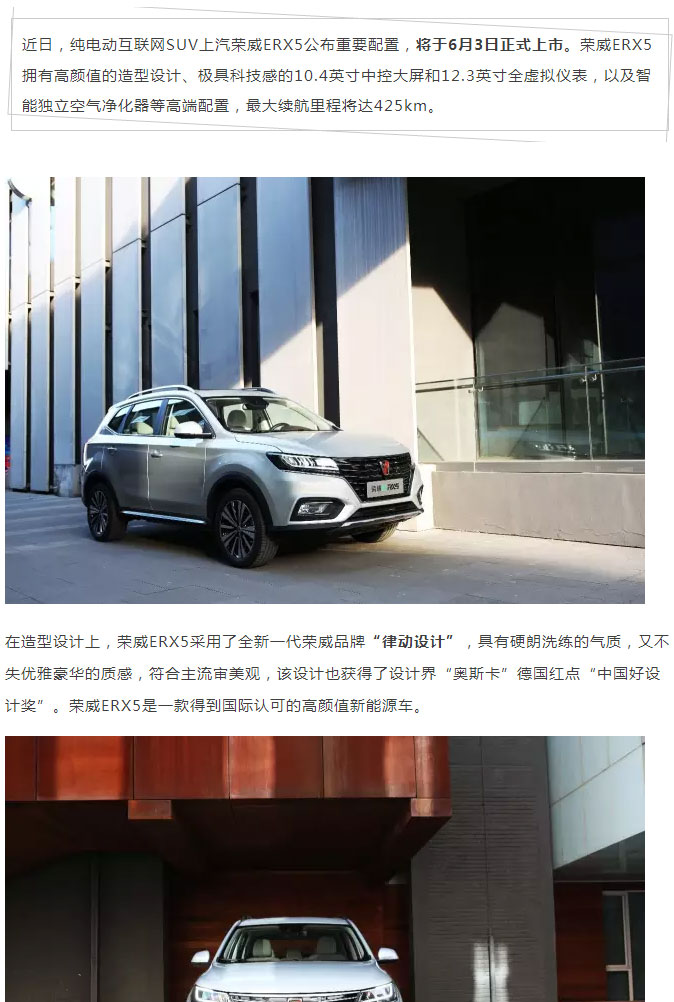 榮威ERX5將于6月3日上市 最大續(xù)航里程超400km